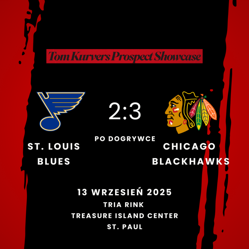 Chicago Blackhawks rozpoczęli Tom Kurvers Prospect Showcase zwycięstwem 3:2 po dogrywce z St. Louis Blues. Zwycięskiego gola zaledwie 24 sekundy po rozpoczęciu dogrywki zdobył Oliver Moore, a Stanislav Berezhnoy był znakomity w swoim pierwszym występie między słupkami w Ameryce Północnej.