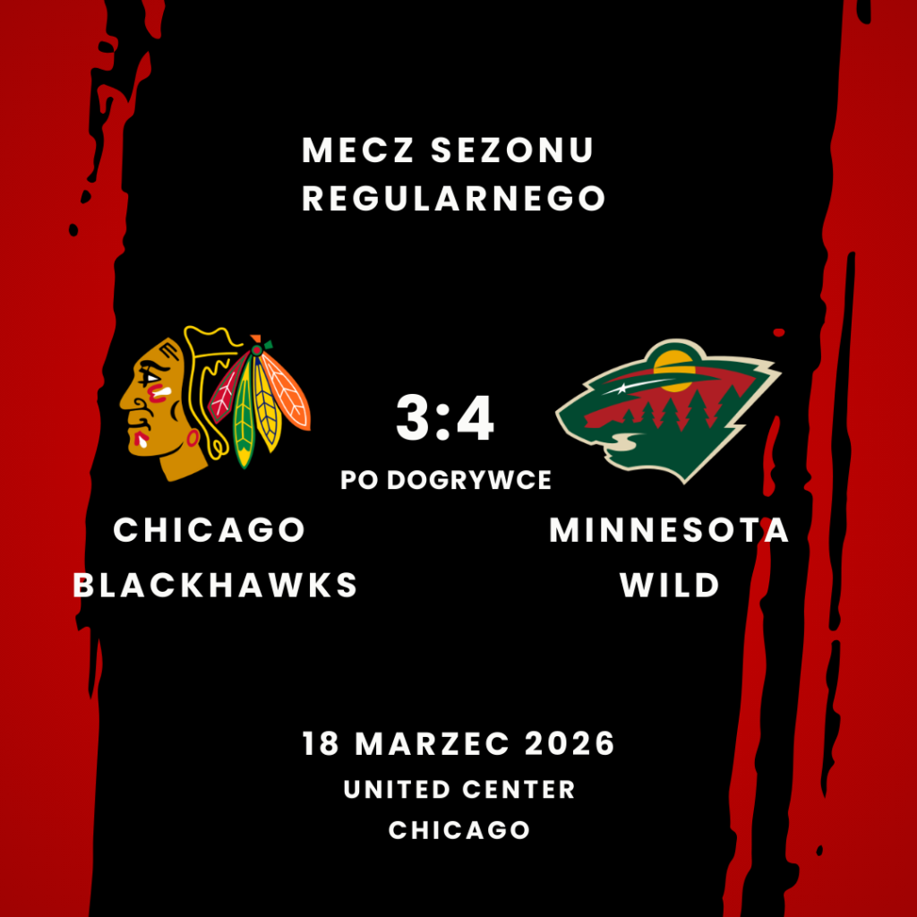 Porażka Blackhawks po dogrywce w meczu na własnym lodowisku z Minnesota Wild