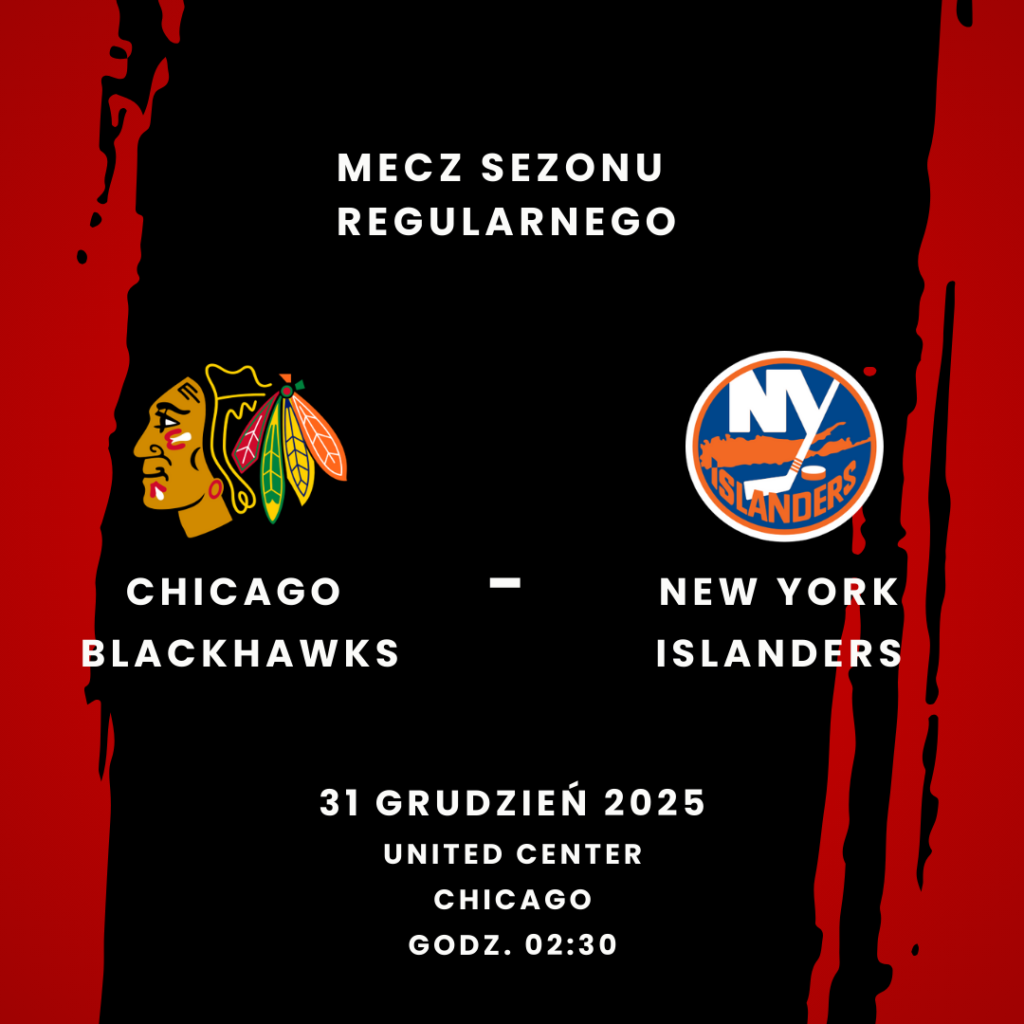 Chicago Blackhawks (bilans 14–18–6) rozegrają dzisiejszej nocy w United Center, ostatni mecz w 2025 roku, przeciwko New York Islanders (bilans 21–14–4). Będzie to pierwsze z dwóch spotkań pomiędzy Blackhawks, a Islanders w sezonie 2025–26. Ostatnio Blackhawks znaleźli się po złej stronie, kolejnego jednostronnego meczu, w drugiej części back-to-back, przegrywając 3:7 z Pittsburgh Penguins. Spencer Knight zaliczył prawdopodobnie najgorszy start w barwach Blackhawks, zostając zmienionym nieco ponad 12 minut po rozpoczęciu spotkania po tym, jak wpuścił cztery gole po siedmiu strzałach. Kapitan Nick Foligno zdobył swojego pierwszego gola w sezonie, w meczu po opuszczeniu 19 spotkań z powodu kontuzji dłoni. Wyatt Kaiser i Tyler Bertuzzi byli pozostałymi strzelcami goli dla Chicago w tej porażce.
