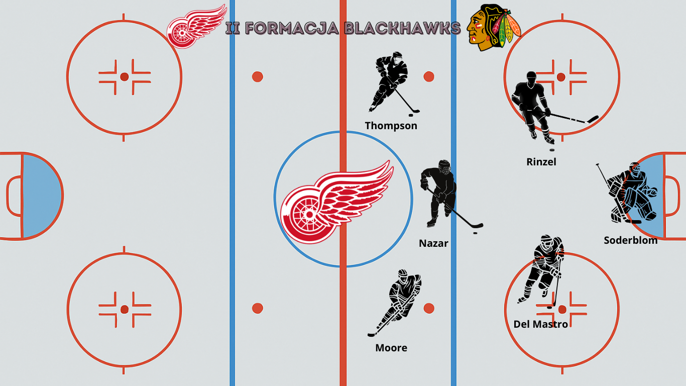 Blackhawks przywożą dziś do Detroit ekscytującą grupę głównie młodych zawodników. Connor Bedard, Frank Nazar, Lukas Reichel, Oliver Moore, Marek Vanacker, Artyom Levshunov, Sam Rinzel i Kevin Korchinski – wszyscy byli wyborami w pierwszej rundzie draftu i wszyscy będą w składzie w meczu przeciwko Red Wings. Arvid Soderblom wyjdzie w bramce od pierwszej minuty i ma rozegrać cały mecz. Jego zastępcą będzie Drew Comesso.