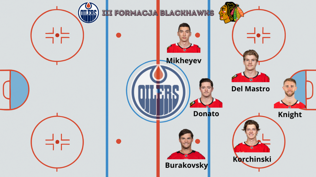 Trent Frederic wróci do składu Oilers na mecz z Blackhawks, natomiast występ Zacha Hymana (nieujawniony uraz) będzie decyzją podjętą tuż przed meczem. Connor Murphy i Jason Dickinson zmierzą się ze swoją byłą drużyną po raz pierwszy od momentu transferu z Chicago do Edmonton przy okazji trade deadline. Colton Dach nie zagra z powodu nieujawnionego urazu.