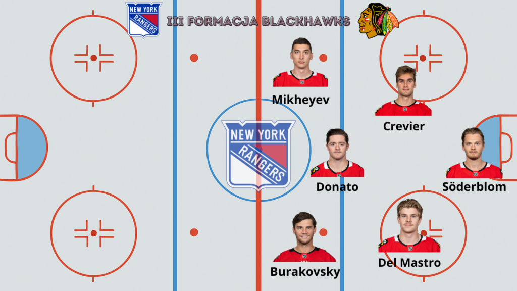 Blackhawks nie przeprowadzili porannego rozjazdu po przylocie z Philadelphii. Poniższe formacje ofensywne i pary defensywne pochodzą z porażki 1:5 z Flyers. Louis Crevier został trafiony w twarz ostrzem łyżwy w trzeciej tercji tego meczu i nie wrócił do gry. Jego występ w meczu przeciwko New York jest niepewny. Andrew Mangiapane może wrócić do składu po opuszczeniu ostatnich czterech meczów z powodu nieujawnionej kontuzji.