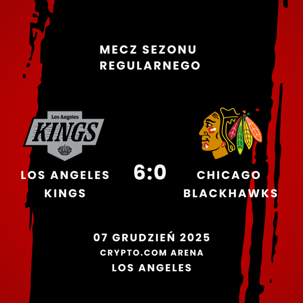 W meczu rozegranym minionej nocy w Crypto.com Arena, Chicago Blackhawks przegrali z Los Angeles Kings 0:6 (0:0, 0:3, 0:3). Bramki dla gospodarzy strzelili: Warren Foegele (Trevor Moore), Andrei Kuzmenko (Kevin Fiala, Drew Doughty – w przewadze), Brandt Clarke (Alex Turcotte, Corey Perry), ponownie Brandt Clarke (Adrian Kempe, Alex Laferriere), Mikey Anderson (Phillip Danault, Drew Doughty) oraz Alex Turcotte (Mikey Anderson, Drew Doughty).