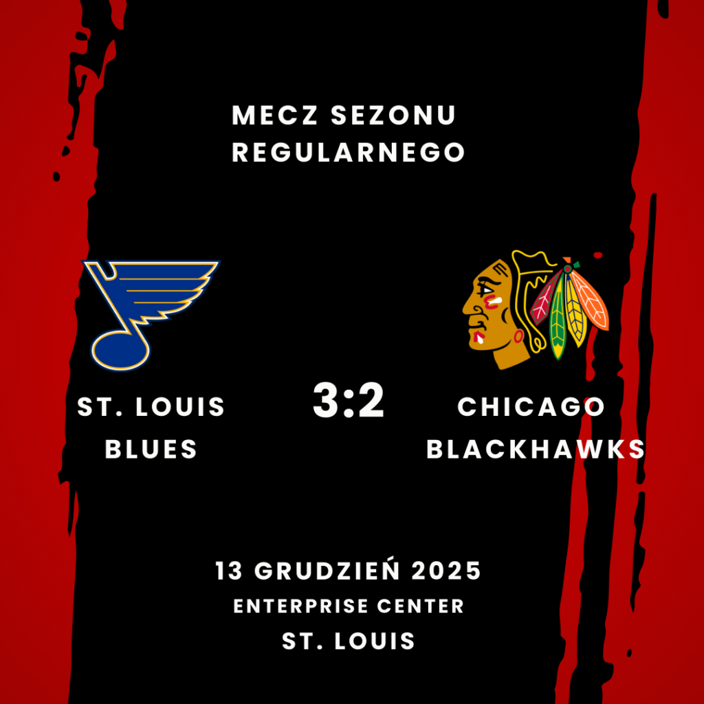 Przed tym meczem Blues stracili 12 bramek w swoich dwóch poprzednich meczach i zajmowali 30 miejsce w NHL pod względem średniej liczby straconych bramek na mecz. Obrona i bramkarze nie są mocnymi stronami St. Louis w tym sezonie, a mimo to Blackhawks sprawili, że wyglądało to zupełnie inaczej, w drugim z czterech spotkań między tymi drużynami w sezonie 2025-26.