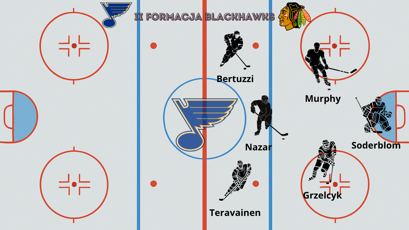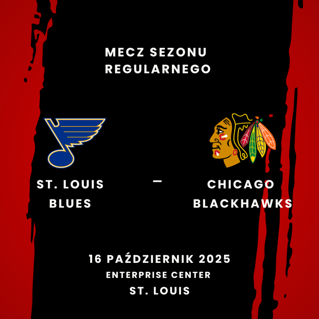 Chicago Blackhawks (bilans 1-2-1) po dwumeczowej serii domowej, zagrają po raz trzeci na wyjeździe, tym razem w Enterprise Center zmierzą się ze St. Louis Blues (bilans 2-1-0). W ostatnim meczu Blackhawks odnieśli swoje pierwsze zwycięstwo w sezonie 2025-26, pokonując Utah Mammoth 3:1 w United Center. Ilya Mikheyev zdobył dwa z trzech goli drużyny, Andre Burakovsky strzelił decydującego gola w swoim 700 meczu w NHL, a Spencer Knight obronił 22 z 23 strzałów. Nie był to najładniejszy występ, gdyż drużyna oddała zaledwie 14 strzałów na bramkę, ale Hawks zdobyli bardzo potrzebne zwycięstwo.