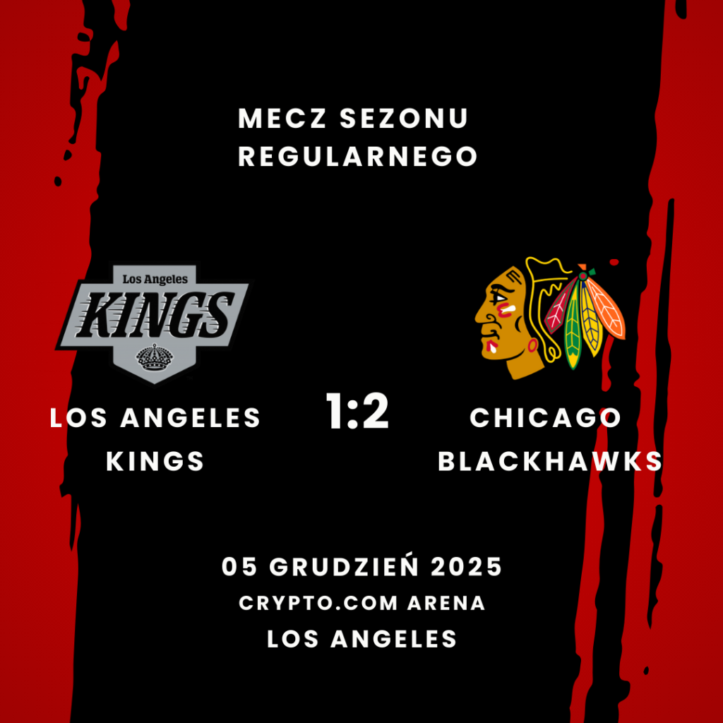 W meczu rozegranym minionej nocy w Crypto.com Arena, Chicago Blackhawks wygrali z Los Angeles Kings 2:1 (0:0, 2:0, 0:1). Jedyną bramkę dla gospodarzy strzelił Trevor Moore (Warren Foegele). Bramki dla gości strzelili: Connor Bedard (Tyler Bertuzzi, Frank Nazar – w przewadze) oraz Wyatt Kaiser (Frank Nazar, Oliver Moore).