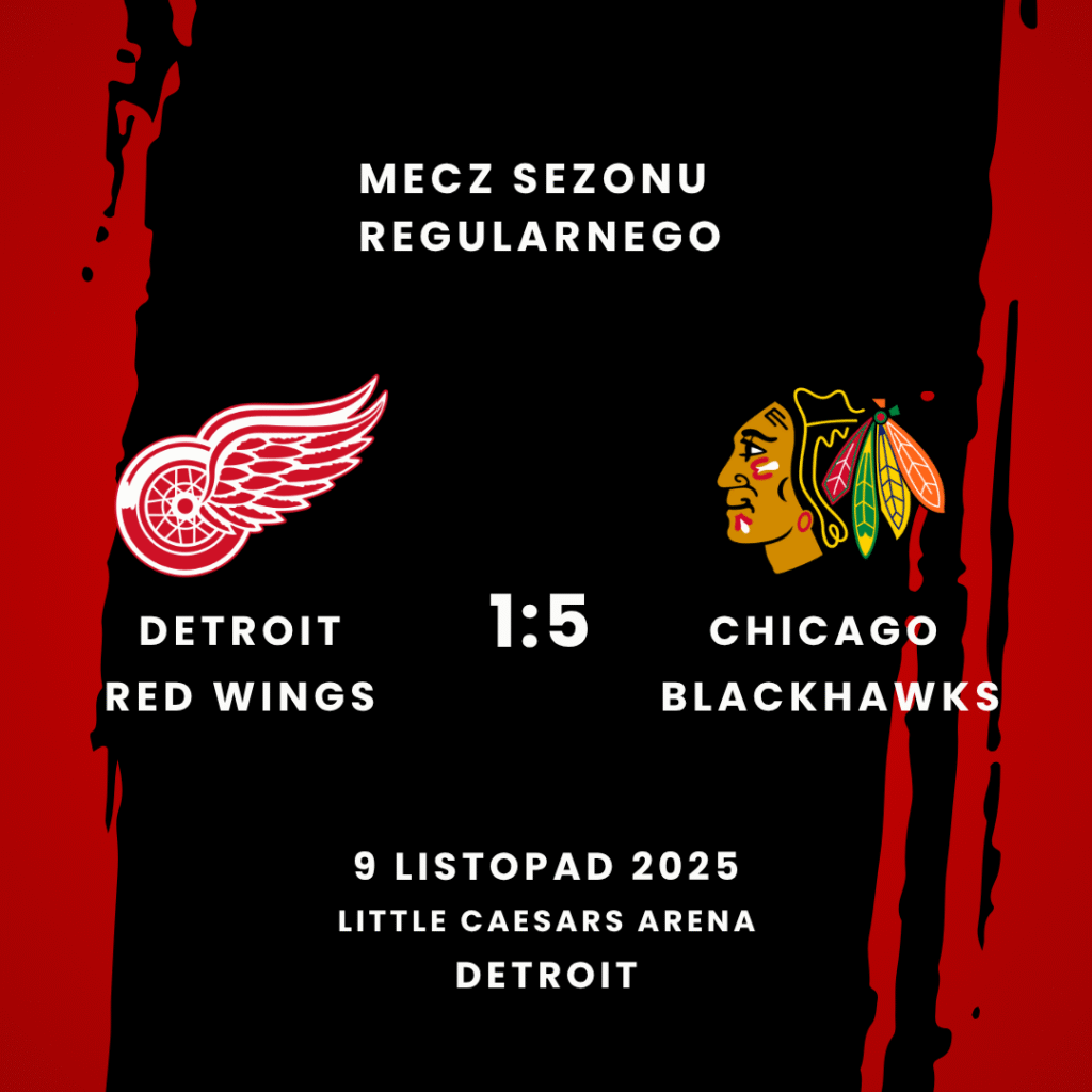 W meczu rozegranym wczorajszego wieczora w Little Caesars Arena, Chicago Blackhawks wygrali z Detroit Red Wings 5:1 (1:1, 1:0, 3:0). Bramki dla gości strzelili: Connor Bedard (Artyom Levshunov, Teuvo Teravainen – w przewadze), Teuvo Teravainen (Andre Burakovsky, Tyler Bertuzzi – w przewadze), Tyler Bertuzzi (Connor Bedard, Artyom Levshunov – w przewadze), Andre Burakovsky (Connor Bedard, Louis Crevier – do pustej bramki) oraz Oliver Moore (Ryan Donato, Matt Grzelcyk). Jedyną bramkę dla gospodarzy strzelił Dylan Larkin (Lucas Raymond, Simon Edvinsson).